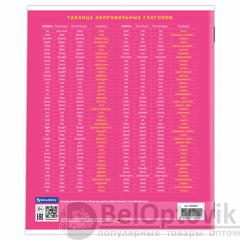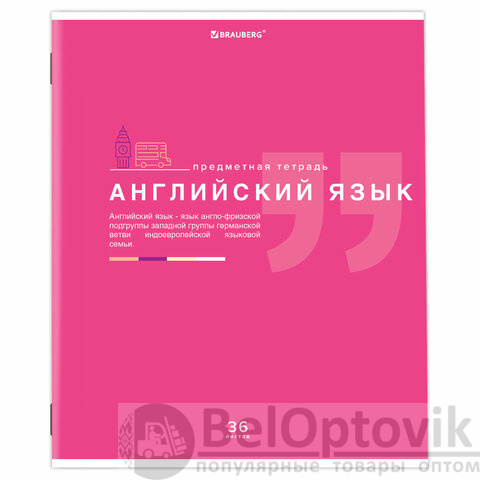 Тетрадь по английскому языку формата А5 (165х202 мм) содержит 36 листов, изготовленных из высококачественной офсетной бумаги плотностью 60 г/м2, 100% белизны. Листы соединены скобами. Линовка блока - клетка, красные поля. Обложка выполнена из мелованной бумаги плотностью 170 г/м2. На обратной стороне обложки расположены основные подсказки по школьному предмету.