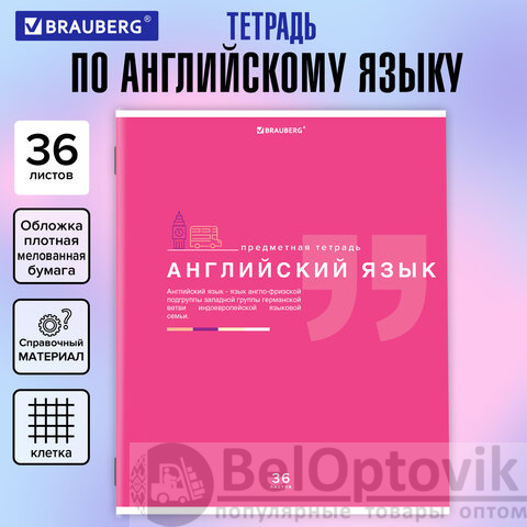 Тетрадь предметная "ЗНАНИЯ" 36 л., обложка мелованная бумага, АНГЛИЙСКИЙ ЯЗЫК, клетка, подсказ, BRAUBERG, 404821