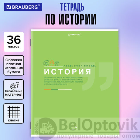 Тетрадь предметная "ЗНАНИЯ" 36 л., обложка мелованная бумага, ИСТОРИЯ, клетка, подсказ, BRAUBERG, 404826