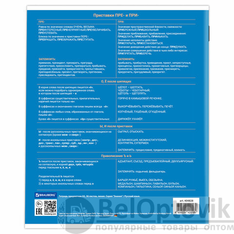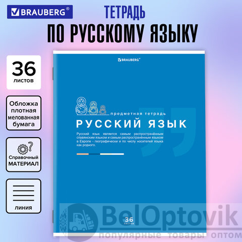 Тетрадь предметная "ЗНАНИЯ" 36 л., обложка мелованная бумага, РУССКИЙ ЯЗЫК, линия, подсказ, BRAUBERG, 404828