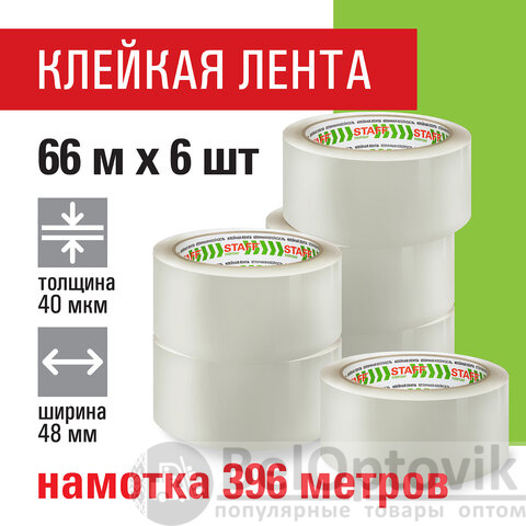 Клейкие ленты упаковочные 48 мм х 66 м, КОМПЛЕКТ 6 шт., прозрачные, 40 микрон, STAFF CLASSIC, 440181