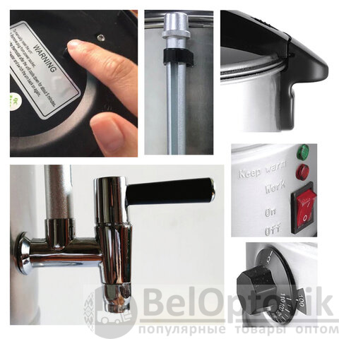 Устройство также поддерживает заданную температуру воды и оснащено регулятором температуры для точной настройки. Ручки с термоизоляцией обеспечивают удобство и безопасность при использовании.