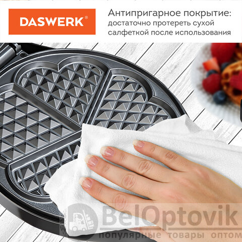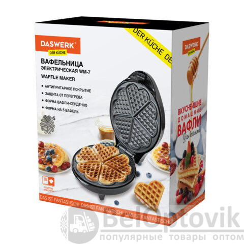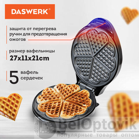 Электровафельница антипригарная для вафель-сердечек, 5 вафель, 1200 Вт, DASWERK, WM-7, 455654