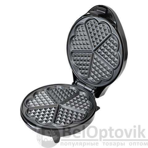 Антипригарное покрытие и встроенный нагревательный элемент мощностью 1200 Вт обеспечивают равномерное приготовление пяти вафель-сердечек одновременно.