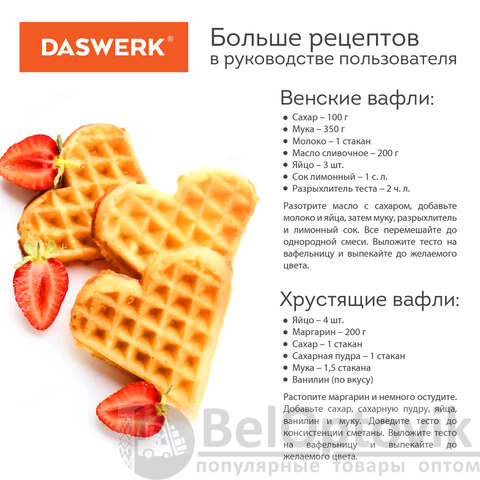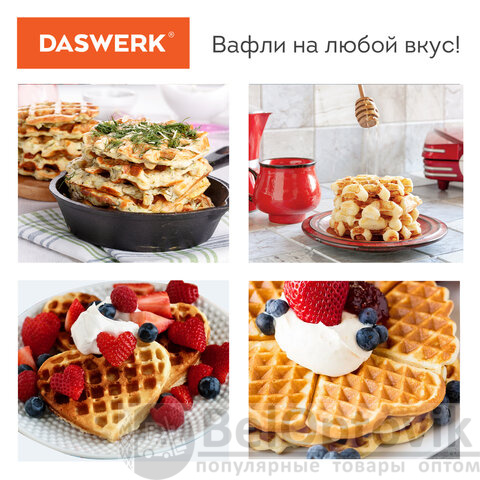 Электрическая вафельница DASWERK подходит для приготовления венских, бельгийских, овощных, сырных и других видов вафель.