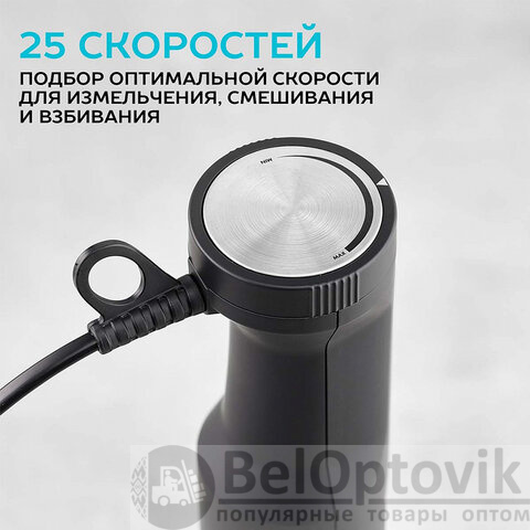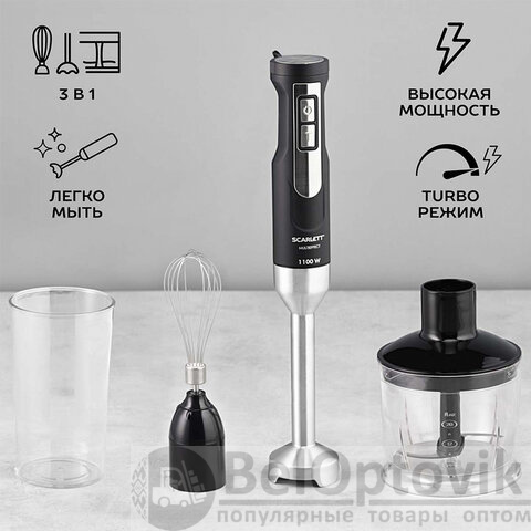 Блендер погружной SCARLETT SC-HB42F61, 1100 Вт, 25 скоростей, 3 насадки, стакан, черный