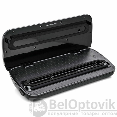Прибор оснащён функцией автоматической упаковки, регулировкой давления и двумя режимами запайки – для сухих и влажных продуктов.