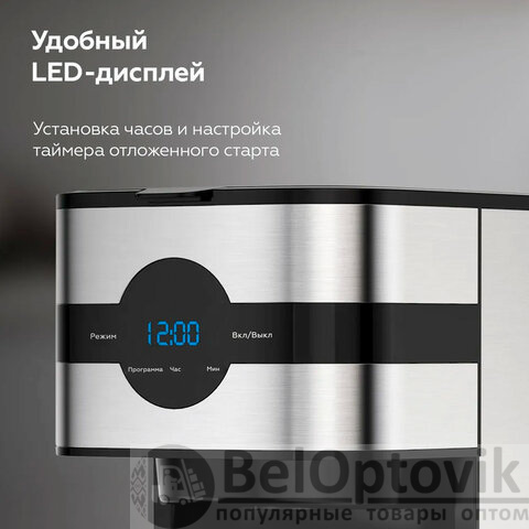 Удобные часы и таймер отложенного старта помогут вам заранее запланировать время заваривания, чтобы насладиться свежеприготовленным кофе прямо с утра.