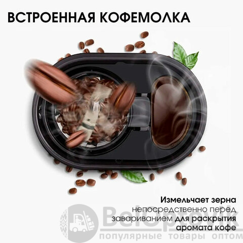 Встроенная ротационная кофемолка вмещает до 32 г зерен, что позволит использовать как молотый, так и зерновой кофе.