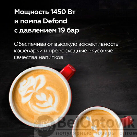 С мощностью 1450 Вт и помпой с давлением 19 бар эта кофеварка гарантирует насыщенный и ароматный эспрессо. Также доступны различные виды напитков, включая капучино и латте – автоматический капучинатор, который создаст идеальную пену для ваших кофейных шедевров.