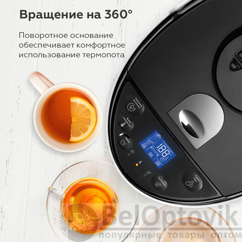 Удобный LCD-дисплей обеспечивает максимально простое управление устройством, предоставляя всю необходимую информацию о текущем режиме работы и температуре. LED-подсветка шкалы уровня воды не только придает термопоту современный вид, но и помогает контролировать уровень жидкости даже в условиях недостаточного освещения. Благодаря функции поддержания температуры ваши напитки всегда будут теплыми и готовы к употреблению в любое время.