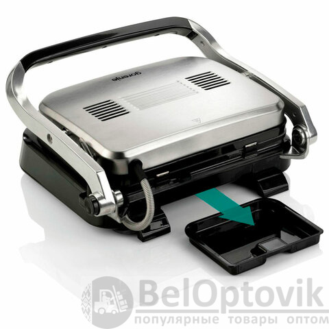 В комплект входят многофункциональный антипригарный коврик размером 40х33 см и съемный поддон для сбора мясного сока, которые максимально упрощают процесс очистки электрогриля.