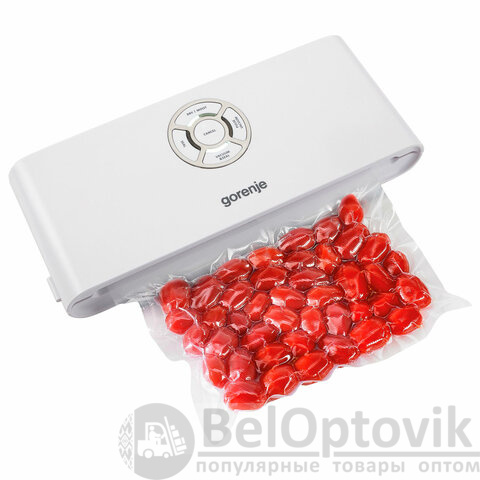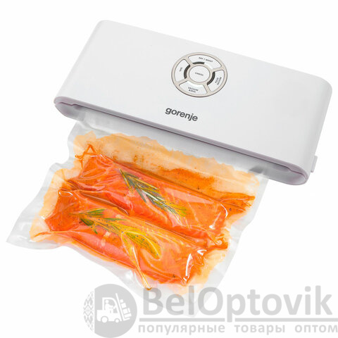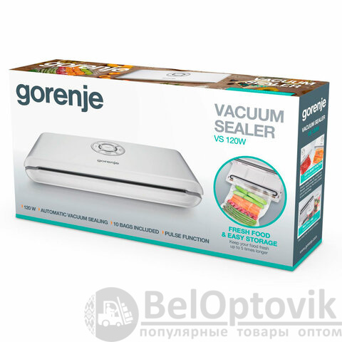 Вакуумный упаковщик GORENJE VS120W – простой в эксплуатации прибор, предназначенный для упаковки сухих и влажных продуктов в специальные вакуумные пакеты.