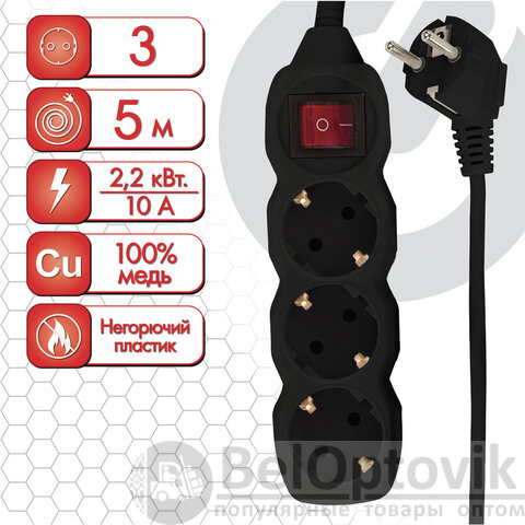 - Количество розеток: 3 шт.