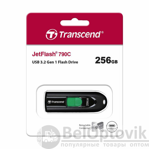 Флеш-диск 256GB TRANSCEND JetFlash 790C, разъем USB Type-С, черный/зеленый, TS256GJF790C