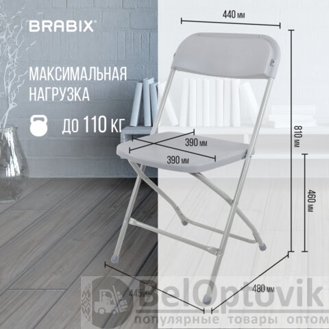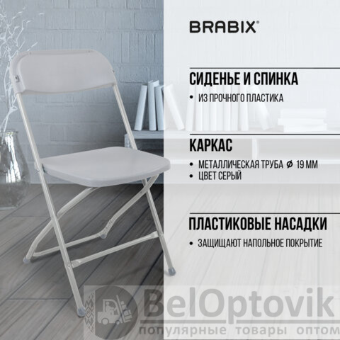 Стул складной BRABIX "Golf CF-002", серый каркас, пластик серый, 531564