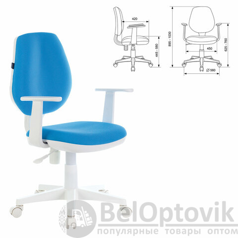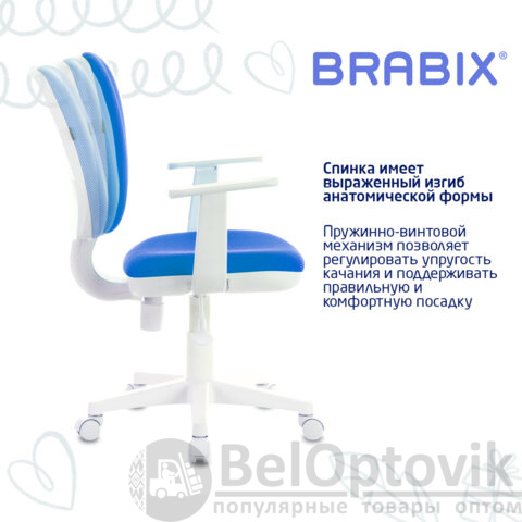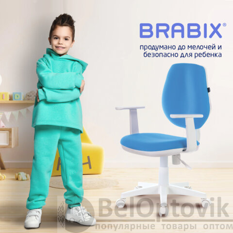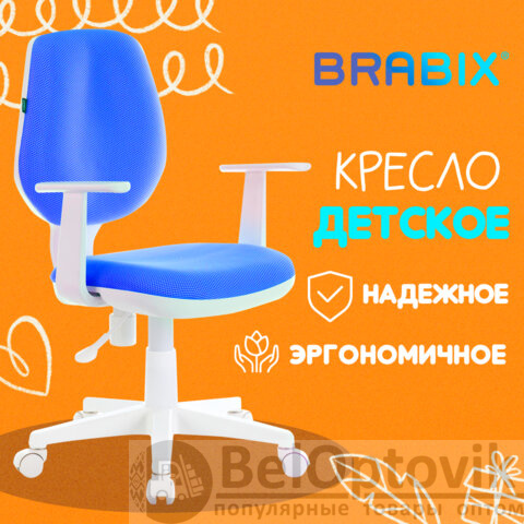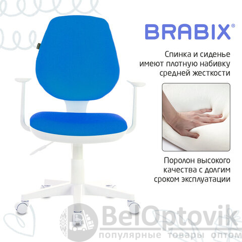 Кресло детское BRABIX "Fancy MG-201W", с подлокотниками, пластик белый, голубое, 532411, MG-201W_532411