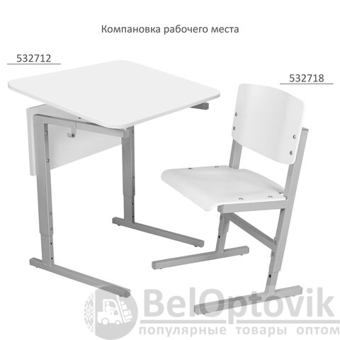 Стол-парта 1-местный, регулируемый угол, СУТ.54-01, 600х500х640-780 мм, рост 4-6, серый каркас, ЛДСП белая
