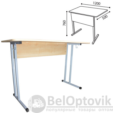 Стол-парта 2-местный нерегулируемый "Умник", 1200х500х760 мм, рост 6, серый каркас, ЛДСП клён