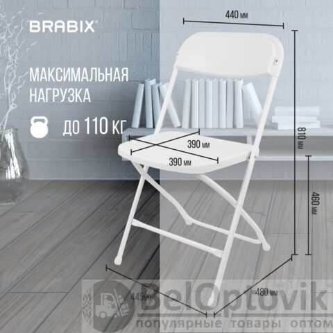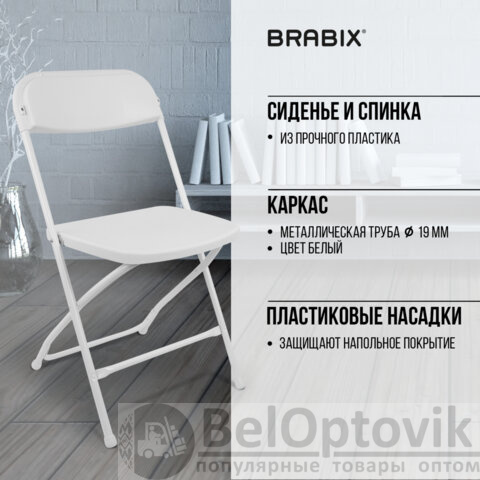 Стул складной BRABIX "Golf CF-002", белый каркас, пластик белый, 532887