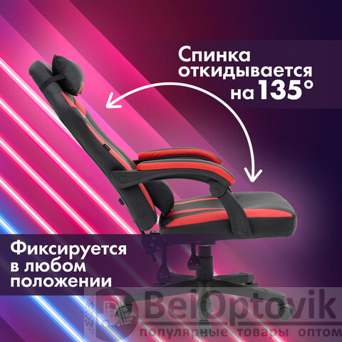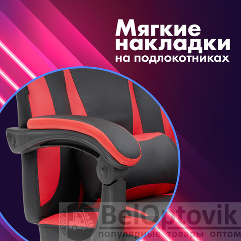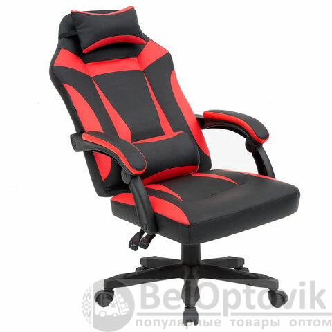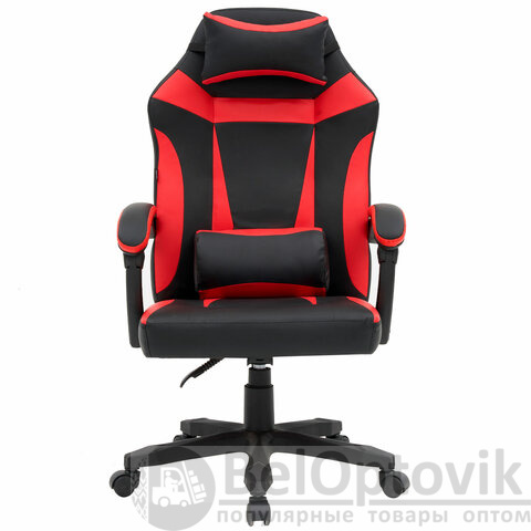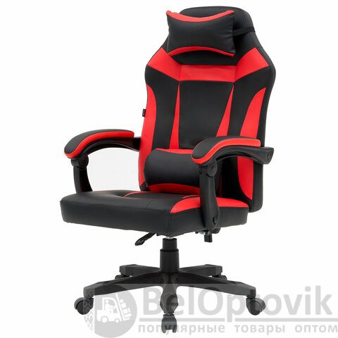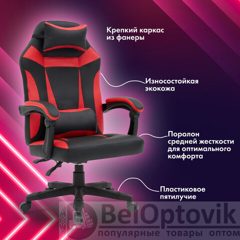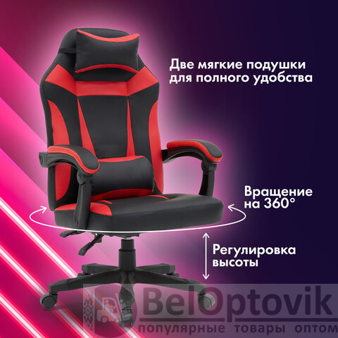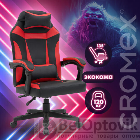 Кресло компьютерное CROMEX "Start GM-105", две подушки, экокожа, черное/красное, 532957