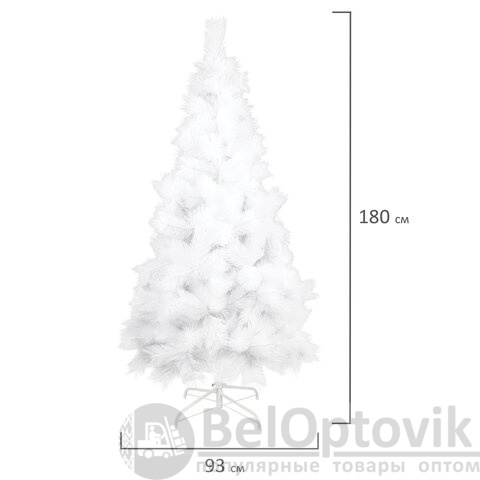 Ель искусственная напольная представляет собой конструкцию из металлического каркаса и закрепляемых на нем ветвей. Материал хвои - полиэтилентерефталат. Цвет хвои - белый. Высота ели - 180 см. Диаметр нижнего яруса - 93 см. Количество веток - 184.