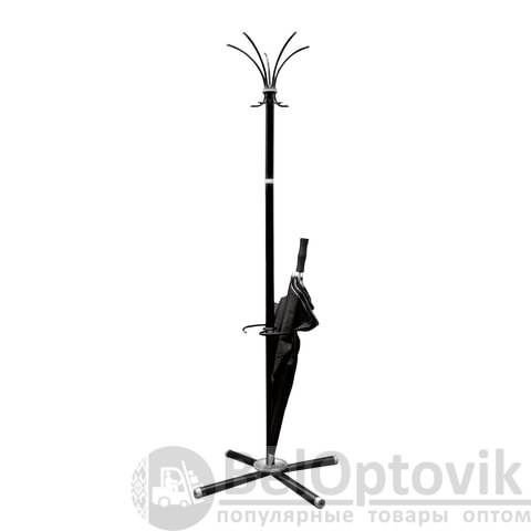 Вешалка-стойка "Классикс-ТМ3", 1,86 м, крестовина 70х70 см, 5 крючков + место для зонтов, металл, черная, Классик-ТМ3,чер