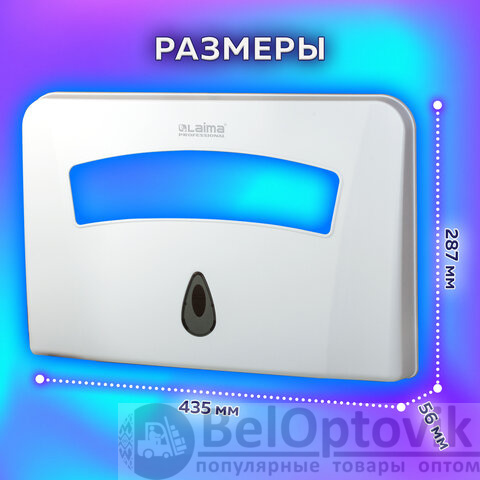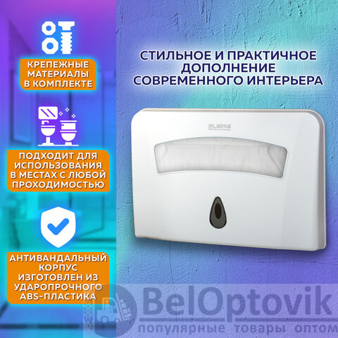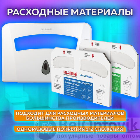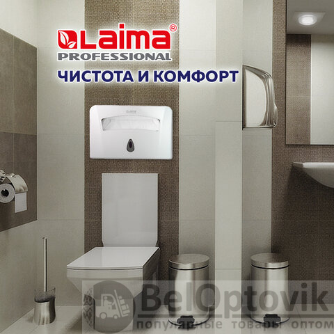 Диспенсер для покрытий на унитаз LAIMA PROFESSIONAL подходит для использования в туалетных комнатах офисов, торговых центров, аэропортов, вокзалов, ресторанов и т.д.