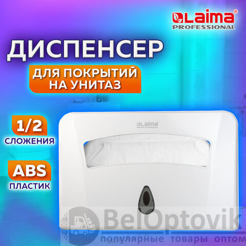 Диспенсер для покрытий на унитаз LAIMA PROFESSIONAL CLASSIC (Система V1) 1/2 сложения, белый, ABS-пластик, 601429