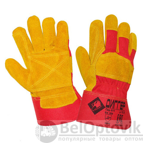 Перчатки спилковые комбинированные ДИГГЕР, усиленные, размер 10,5 (XL), желтые/красные, ПЕР611