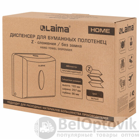 Диспенсер для полотенец бытовой LAIMA HOME (Система H2), Z-сложения, белый, ABS, 609108, M-5823B-W