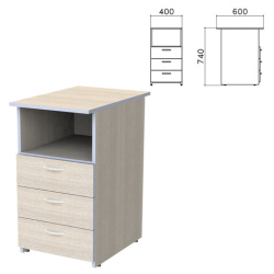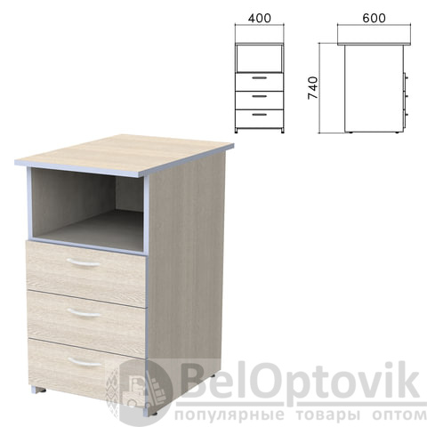 Тумба приставная "Бюджет", 400х600х740 мм, 3 ящика, полка, дуб шамони светлый, 402657-430