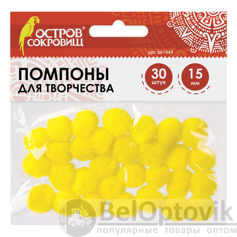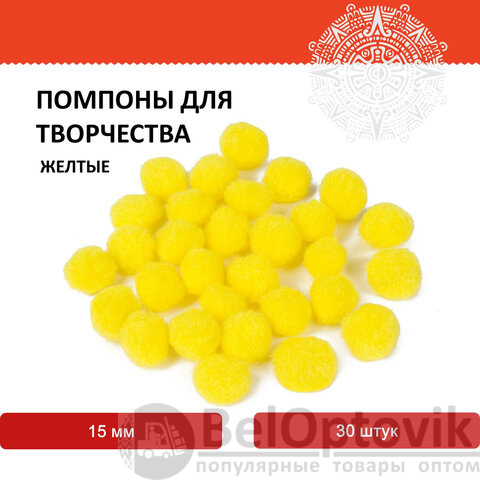 Помпоны для творчества, желтые, 15 мм, 30 шт., ОСТРОВ СОКРОВИЩ, 661444