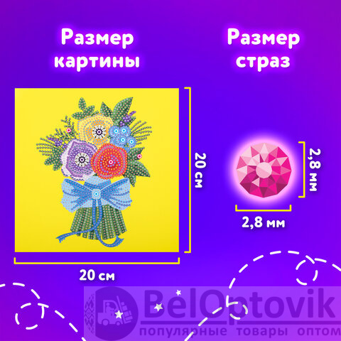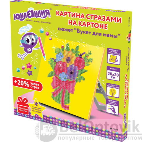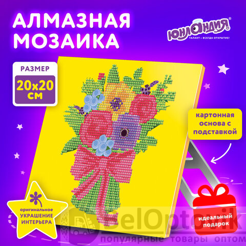 Картина стразами (алмазная мозаика) 20х20 см, ЮНЛАНДИЯ "Букет для мамы", картон, 662432