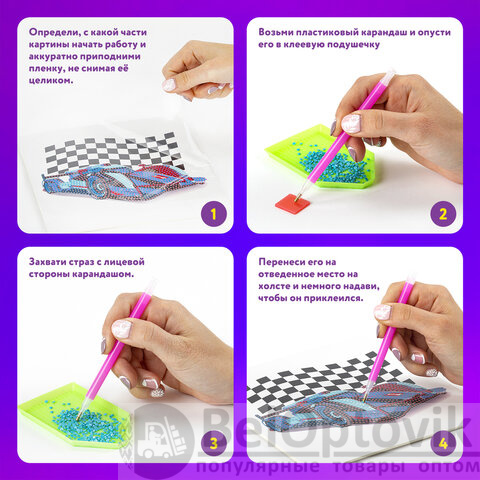 Техника алмазной мозаики проста в исполнении и не требует владения никакими специальными навыками. Все необходимые для работы материалы и инструменты входят в набор, с подробной инструкцией можно ознакомиться на упаковке.