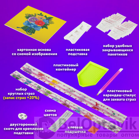 Набор для создания картины стразами "Букет для мамы" включает в себя: