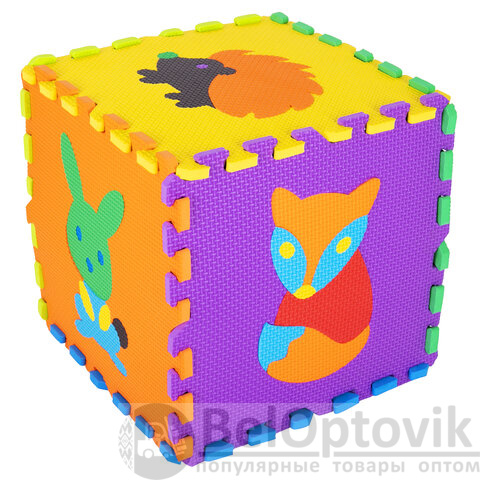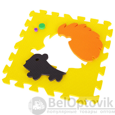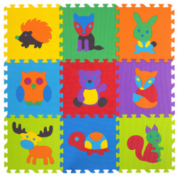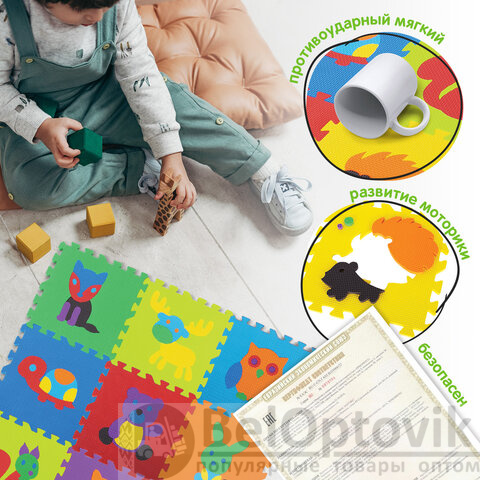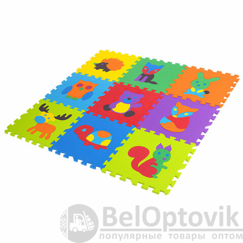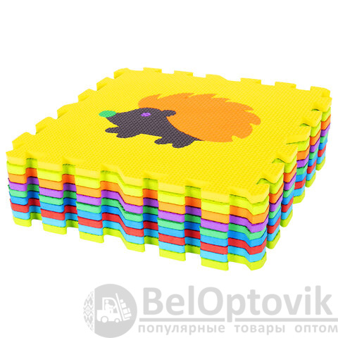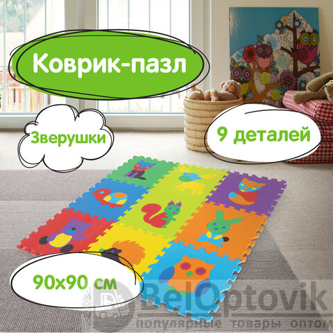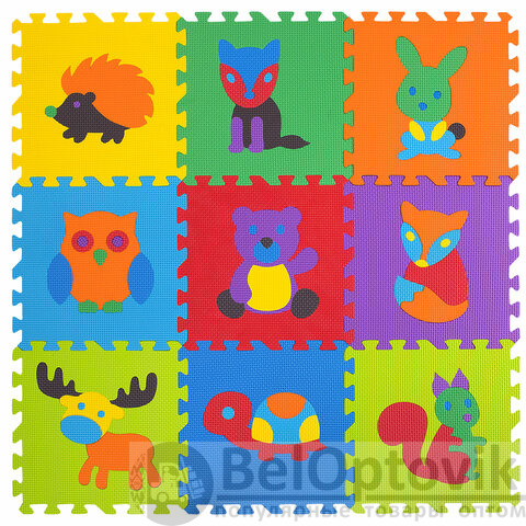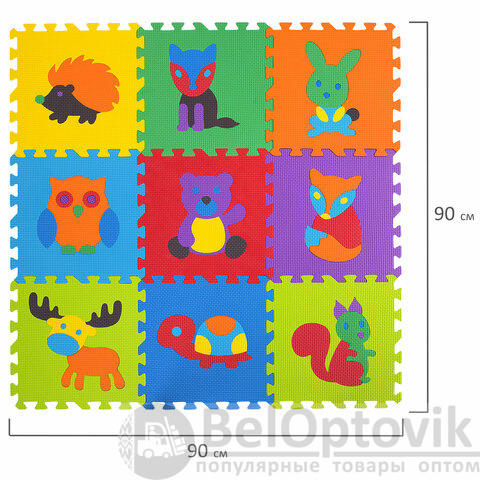 Коврик-пазл напольный 0,9х0,9 м мягкий "Зверушки", 9 частей 30х30 см, толщина 1 см, ЮНЛАНДИЯ, 664666