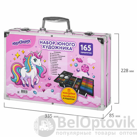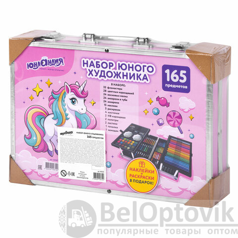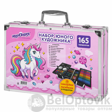Набор ЮНОГО ХУДОЖНИКА "ЕДИНОРОГ" для рисования и творчества в кейсе ЮНЛАНДИЯ, 165 предметов, 665670