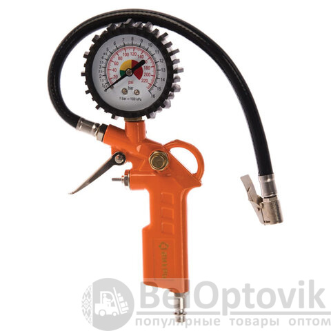 Пистолет для накачивания шин оснащен манометром – для контроля текущего давления.