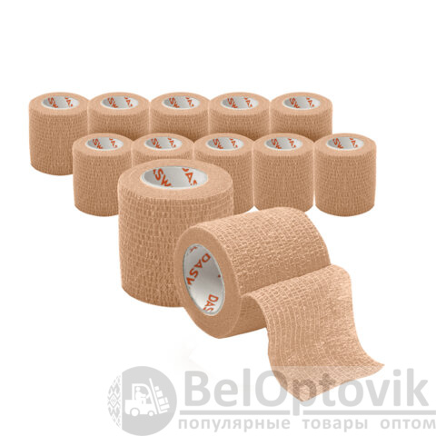 Бинт эластичный бандажный защитный самофиксирующийся, 4,5 м х 5 см, 12 рулонов, бежевый, DASWERK, 680042