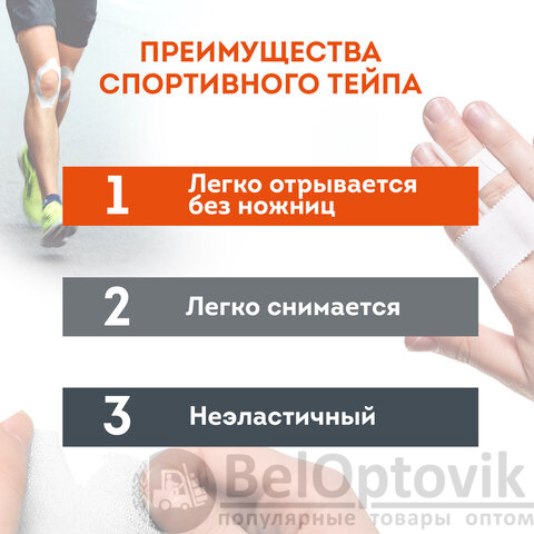 Спортивный тейп – это бандаж для жесткой фиксации суставов, связок и элементов снаряжения. Обеспечивает оптимальную плотность и надежную компрессию на длительное время. Материал отрывается без ножниц, быстро приклеивается и легко снимается. Растяжимость – 0%.