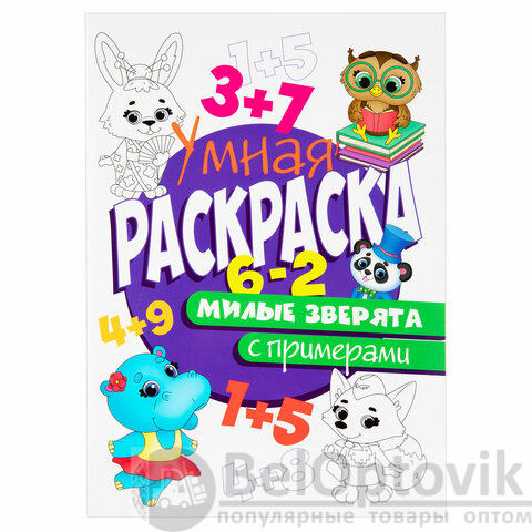 6. Умная раскраска с примерами. "Милые зверята", 195х276 мм, 16 стр.