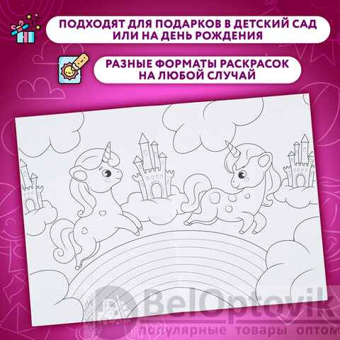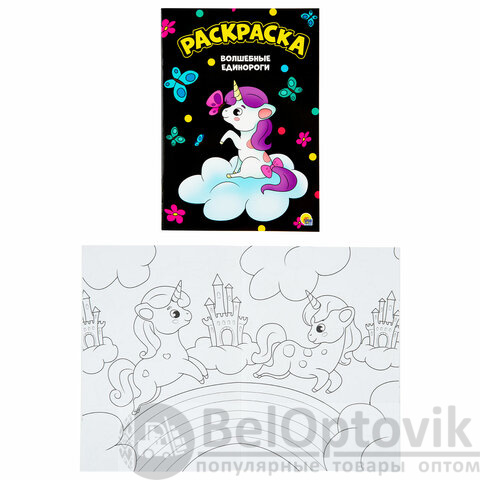 4. Моя раскраска А4 черная. "Волшебные единороги", 195х276 мм, 16 стр.