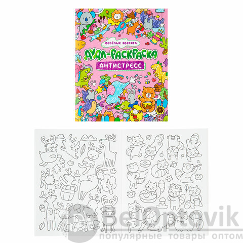 7. Дудл-раскраска. Антистресс. "Веселые зверята", 196х260 мм, 32 стр.