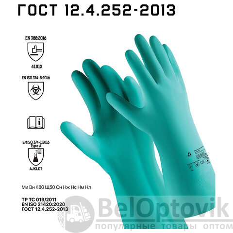 • EN 374-2, защита от воздействия микроорганизмов (бактерий и грибка).