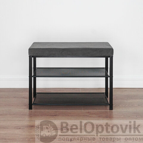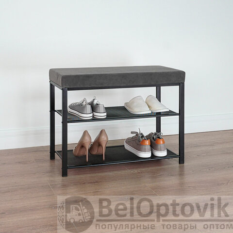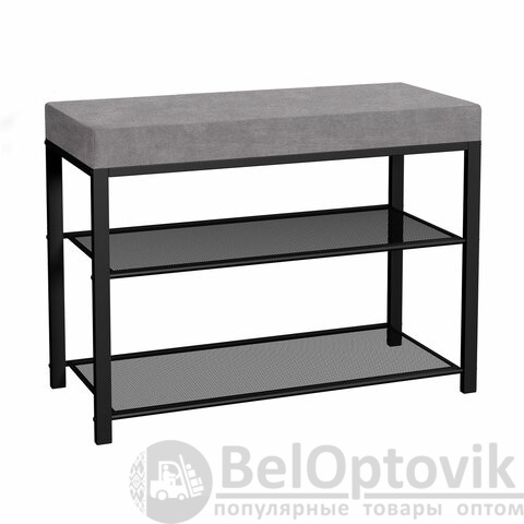 Банкетка для обуви "Торонто-23S", 670х300х490 мм, 2 полки, металл/ткань, черная/серая, БТ23СЧС