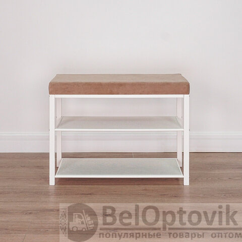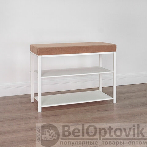 Банкетка для обуви "Торонто-23S", 670х300х490 мм, 2 полки, металл/ткань, белая/бежевая, БТ23СББ