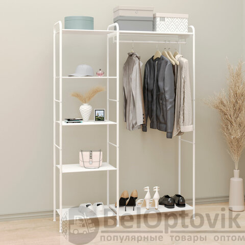 Вешалка-стеллаж "Валенсия-1", 1555х1090х300 мм, 7 полок, металл, белая, ГСВ1 Б