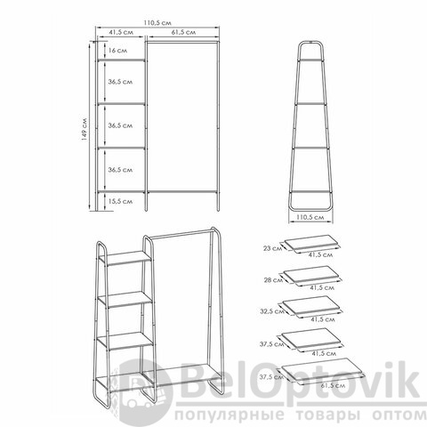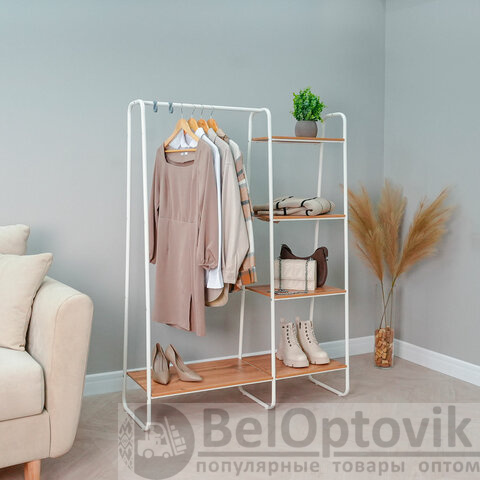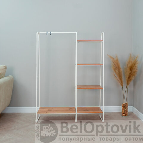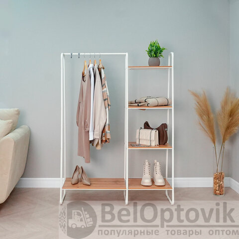 Вешалка-стеллаж "Скандинавия-1", 1470х1100х385 мм, 5 полок, металл/ЛДСП, белая/дуб, ГСС1 Б