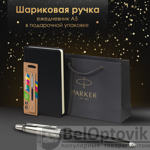 Ручка шариковая PARKER "Jotter Plastic CT", корпус черный, ежедневник А5 черный, белый срез, пакет, 880895
